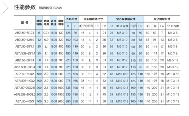 • AB7L50 external rotating magnetic powder clutch