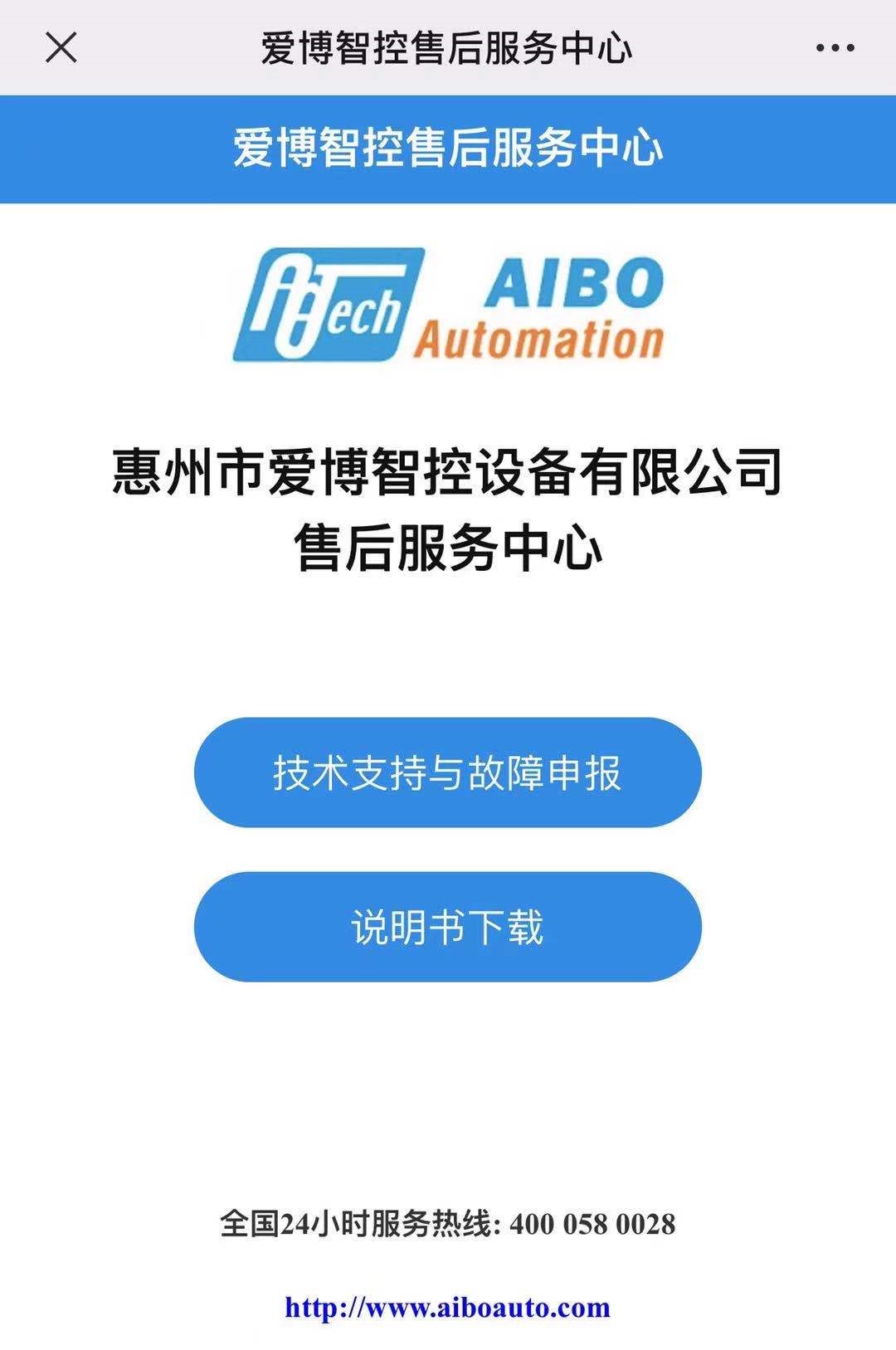 可通过关注我们的微信公众号“爱博智控”微信公众号获取帮助!